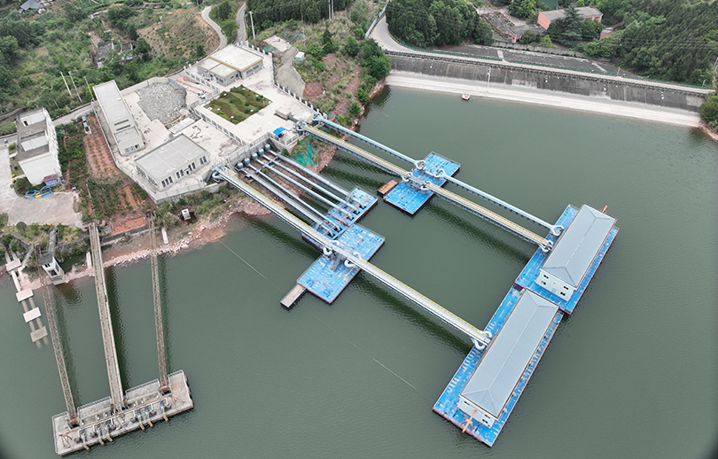 张家岩水库直接引水至老鹰水库管道工程(一期)在成都通过工程完工验收。图为工程老鹰水库出水口现场。
